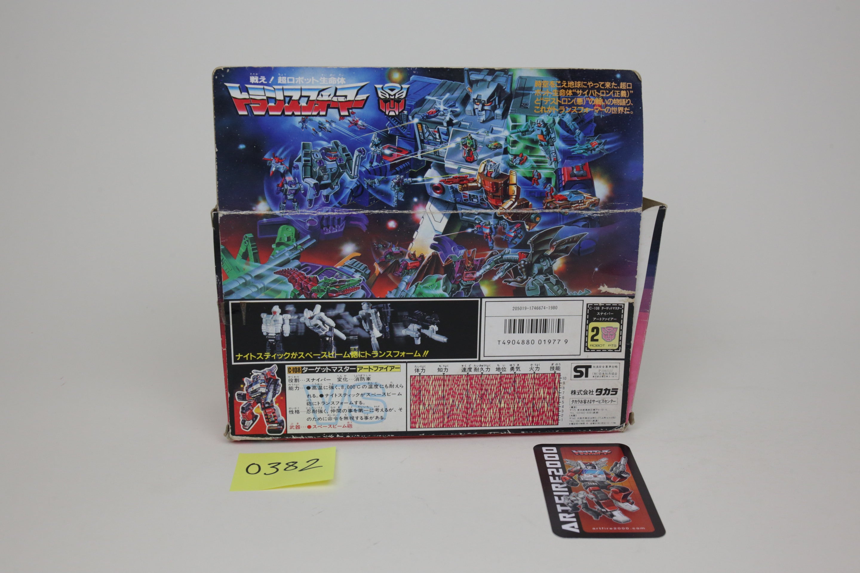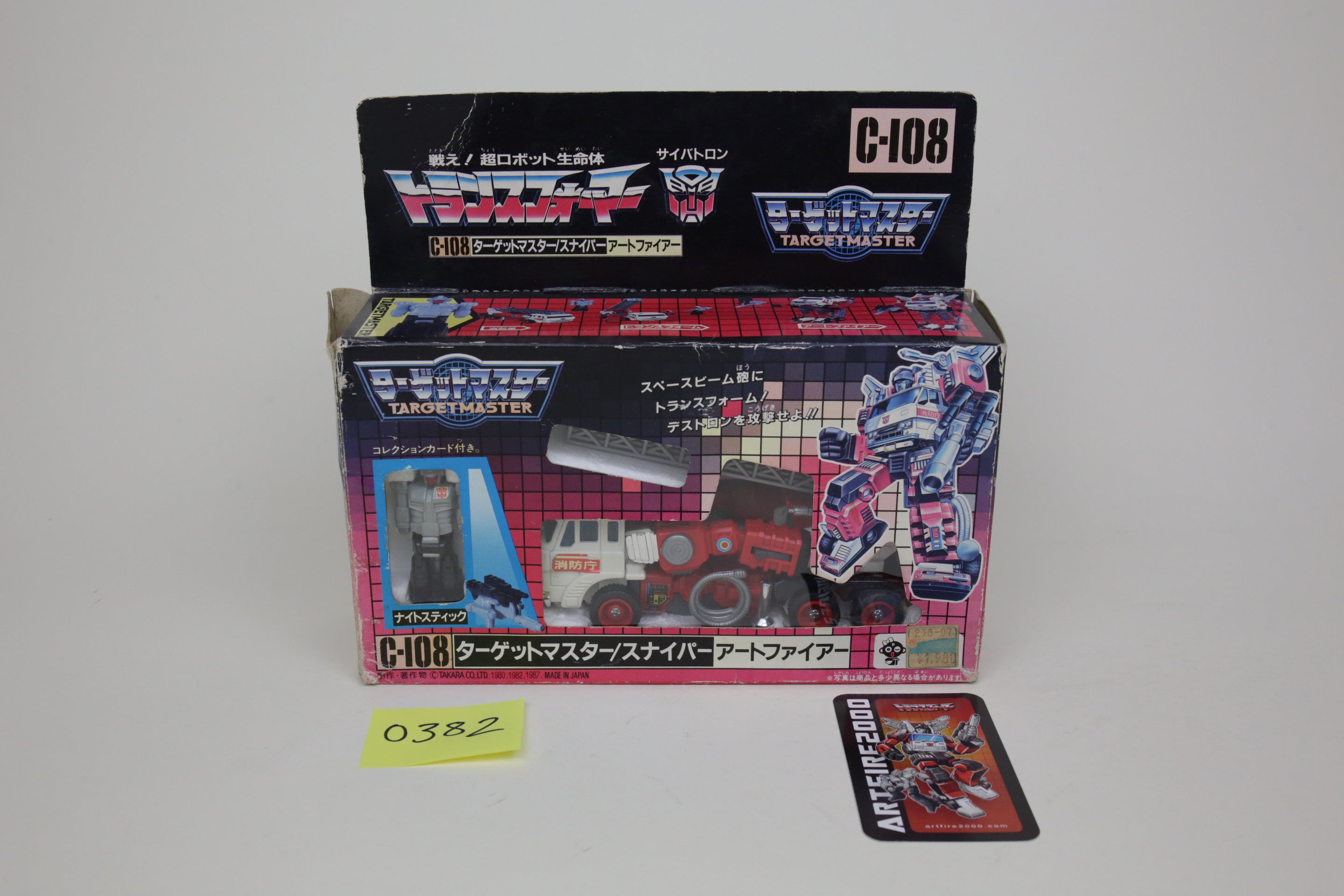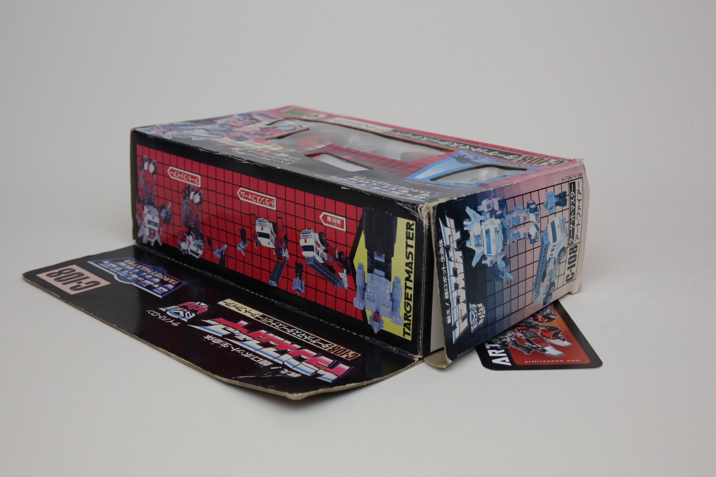 This is the super rare Japanese exclusive Targetmaster Artfire. Toy is in nice shape, box has some wear but displays well. It is near complete, with some repair done to one of the wings and missing the small black square.
