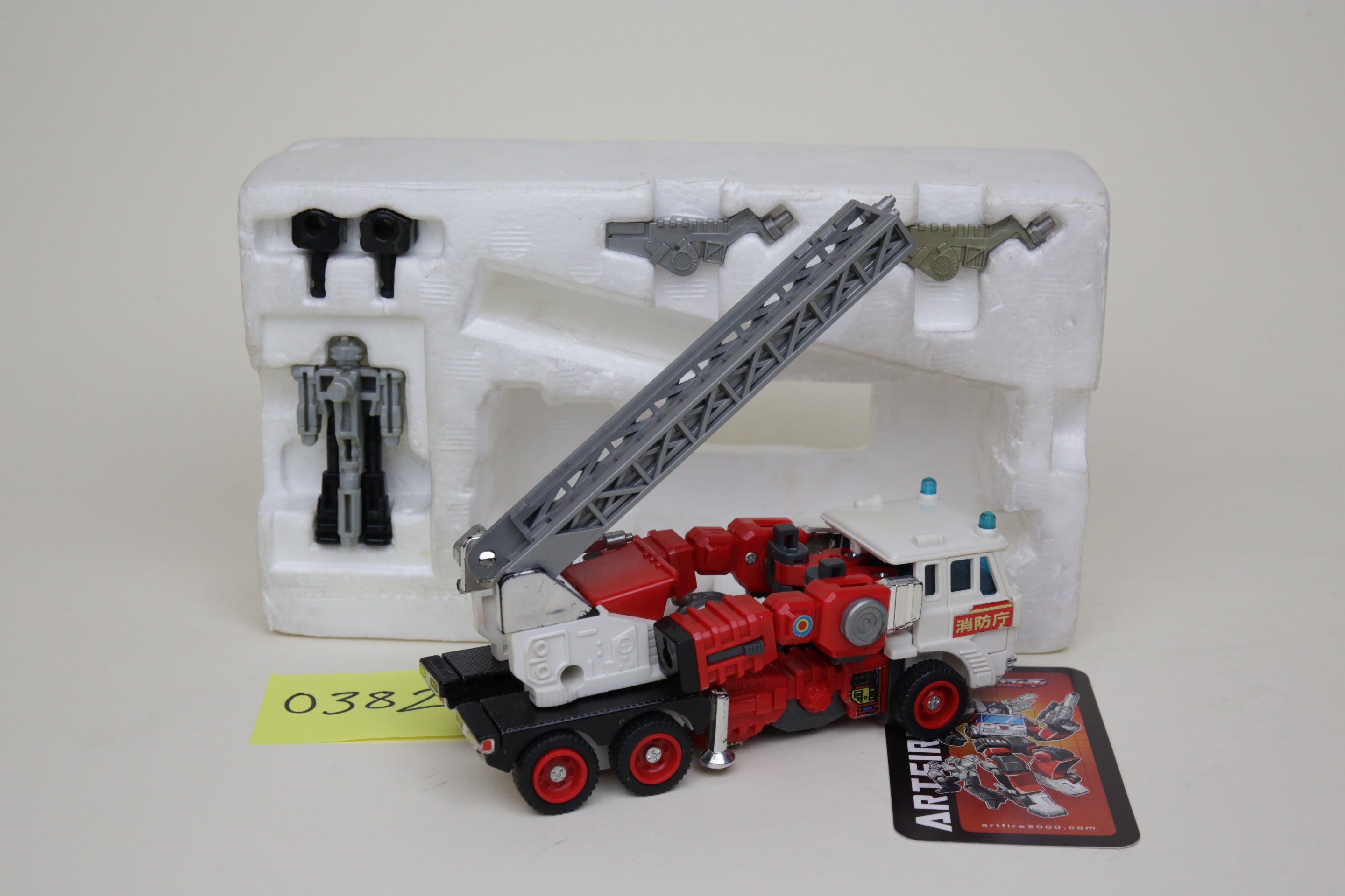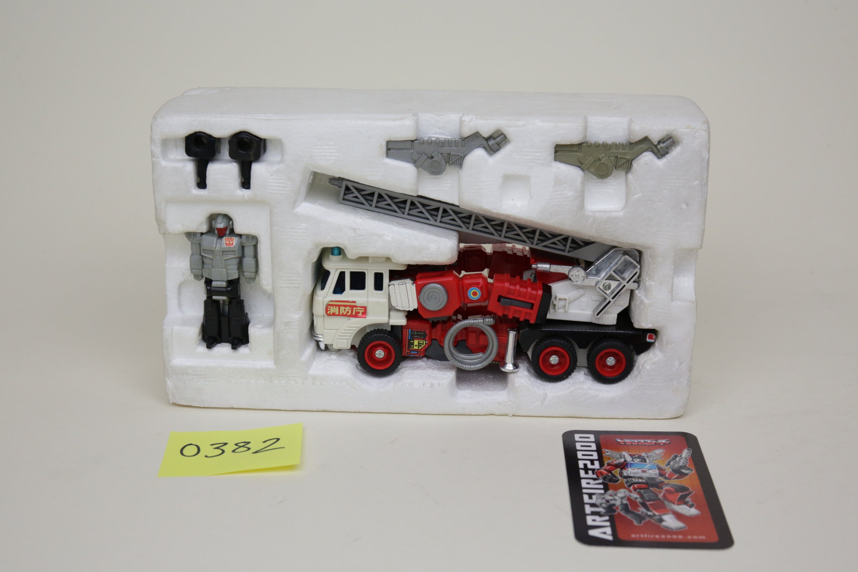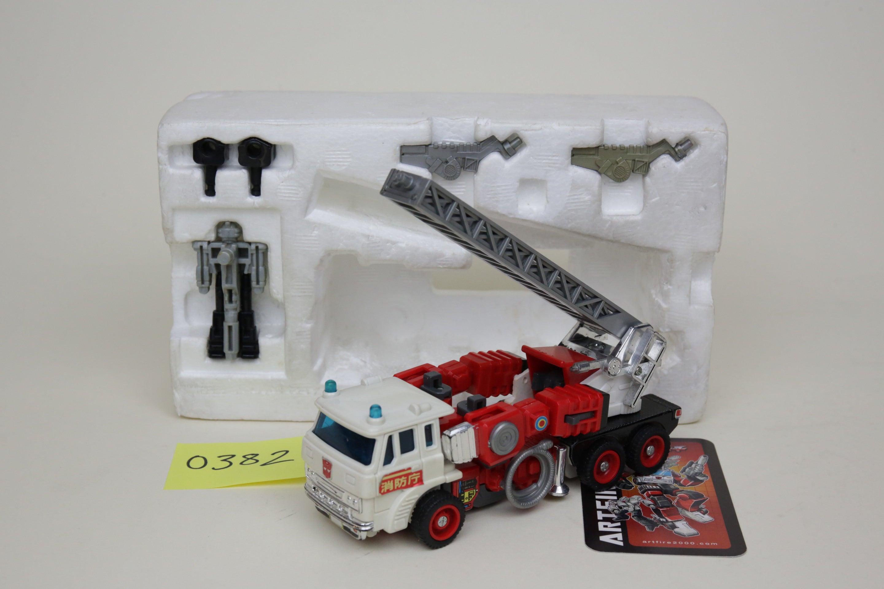 This is the super rare Japanese exclusive Targetmaster Artfire. Toy is in nice shape, box has some wear but displays well. It is near complete, with some repair done to one of the wings and missing the small black square.