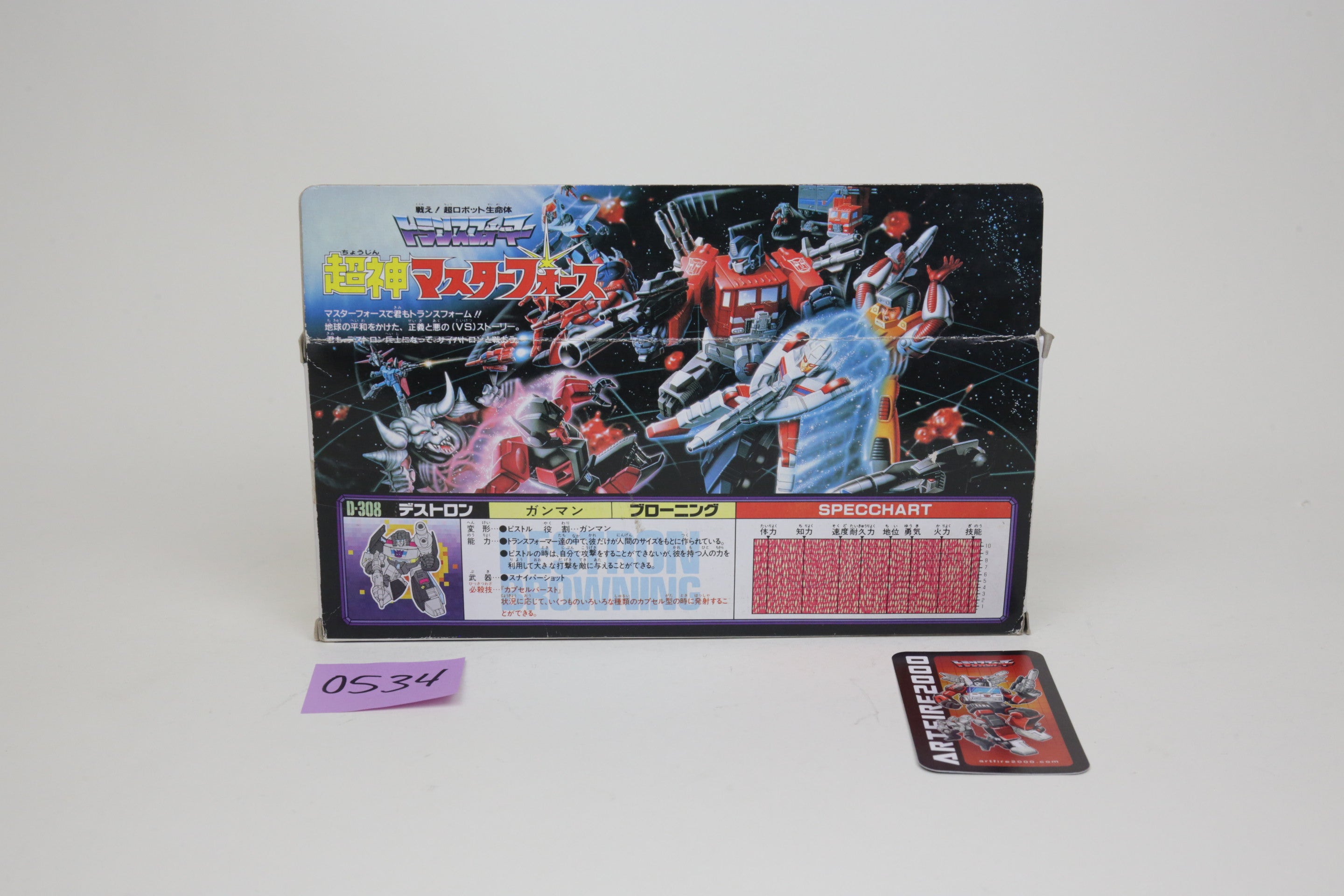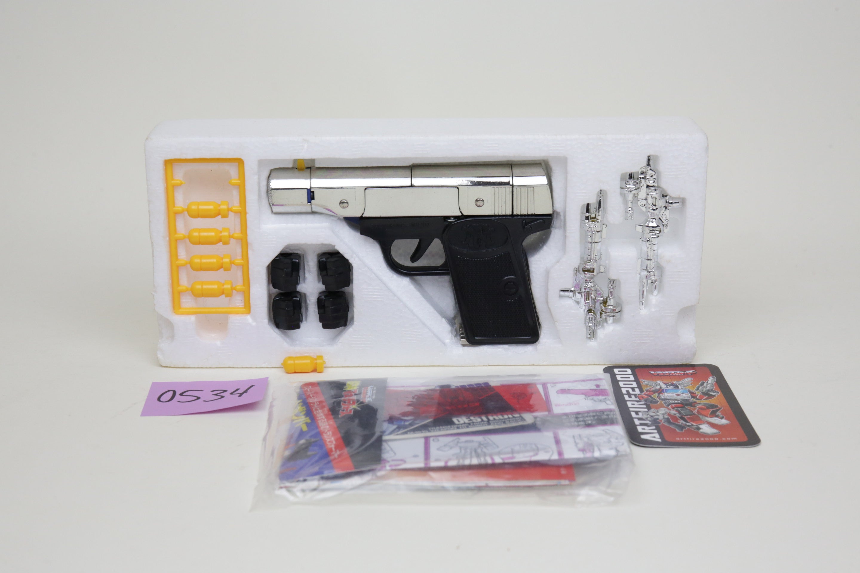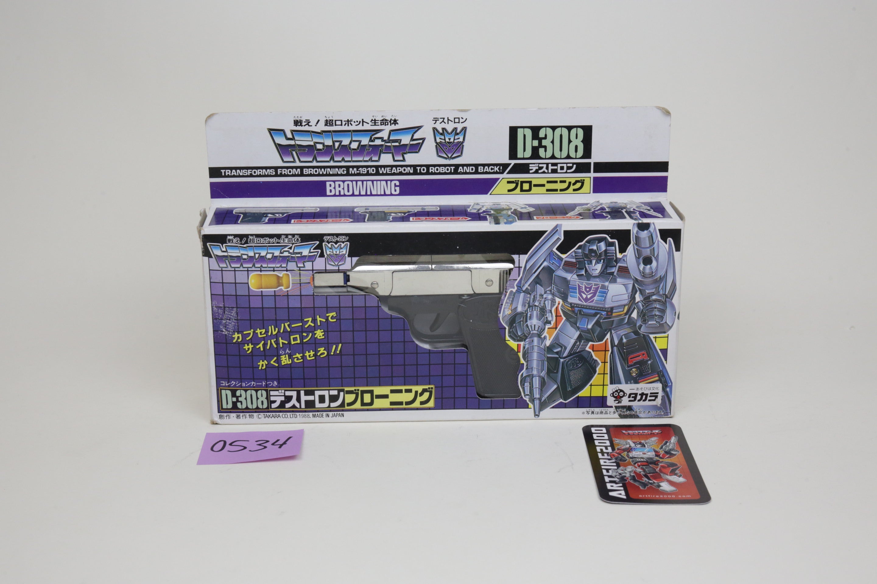 Browning is a rare figure these days. Toy is complete with papers in box and nice condition as shown. Chrome is in good shape. If it’s shipped overseas, it will be transformed and sent in robot mode.
