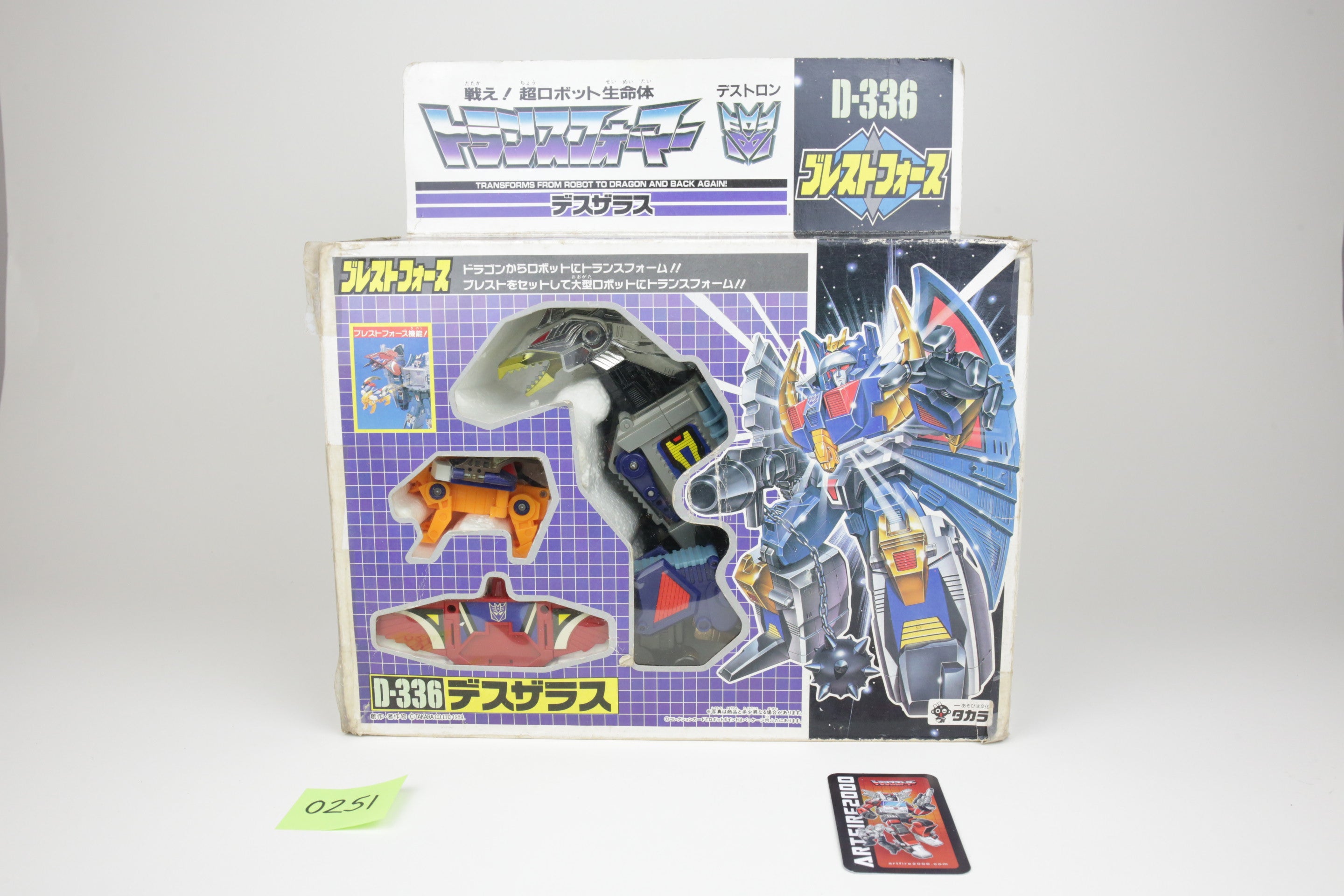 Deathsaurus is complete and in good shape. He’s a very impressive and looming figure! There is tape on the box and one of the flaps has been cut, but it displays well. It comes with instructions as shown.