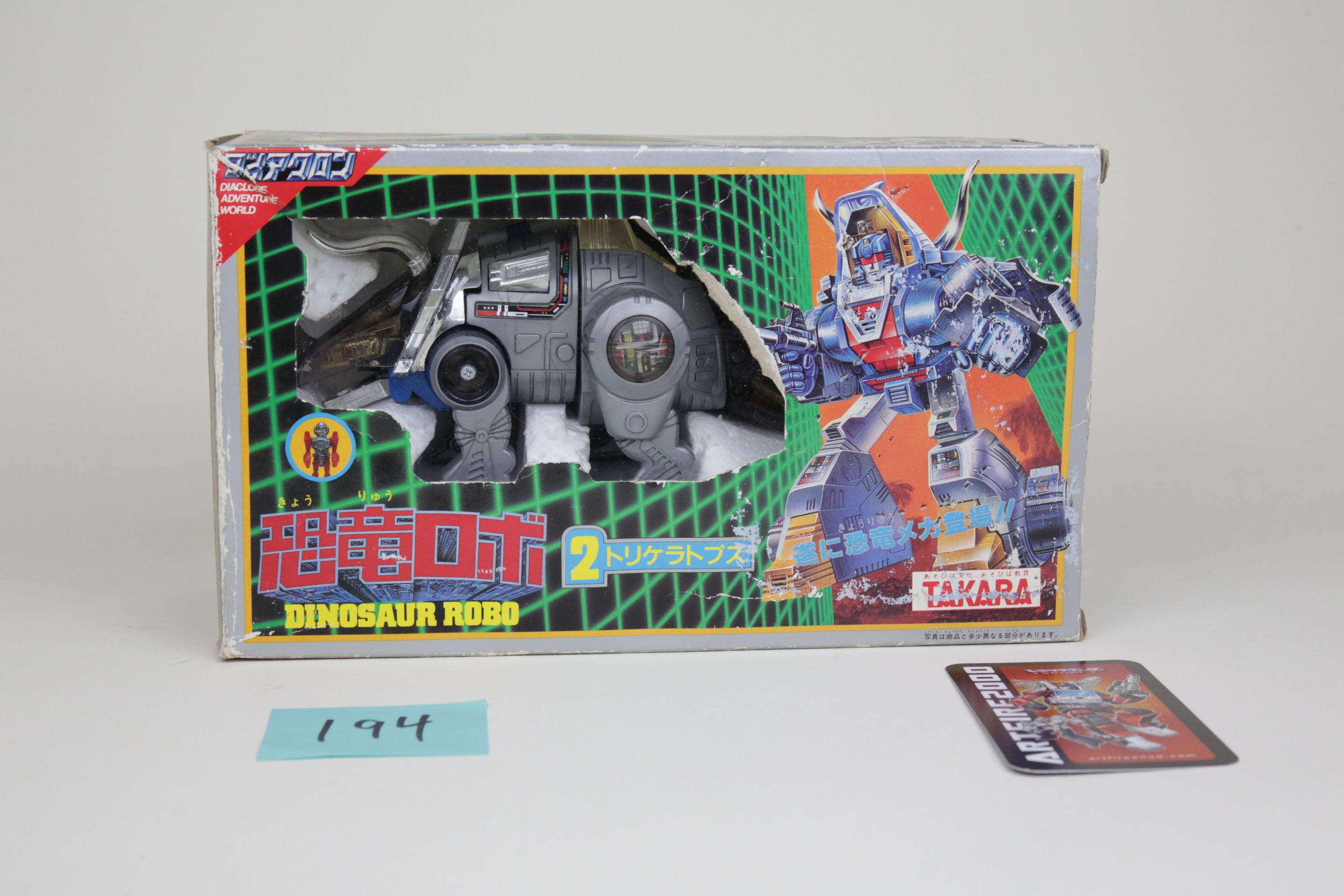 This is a diaclone version slag with the blue chest and chromed horns. He’s in nice condition, though is missing his driver. Box has some wear as shown.