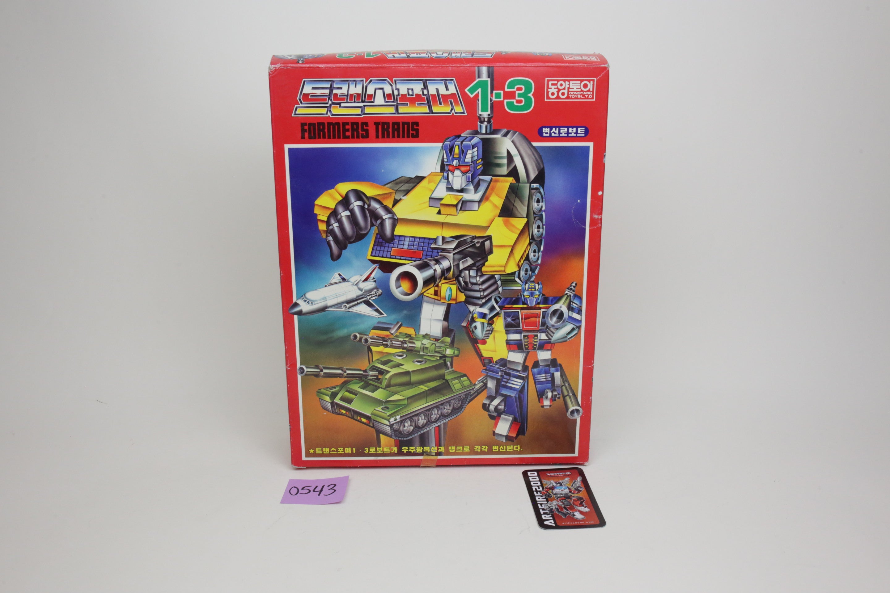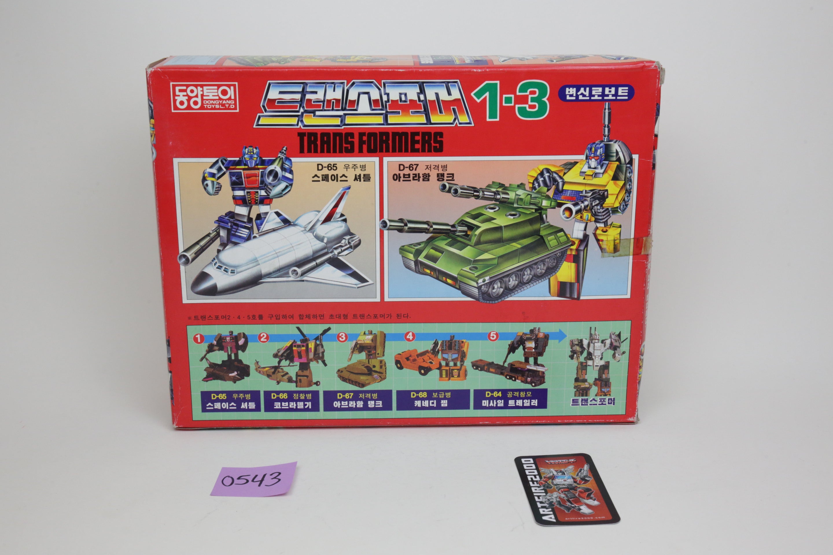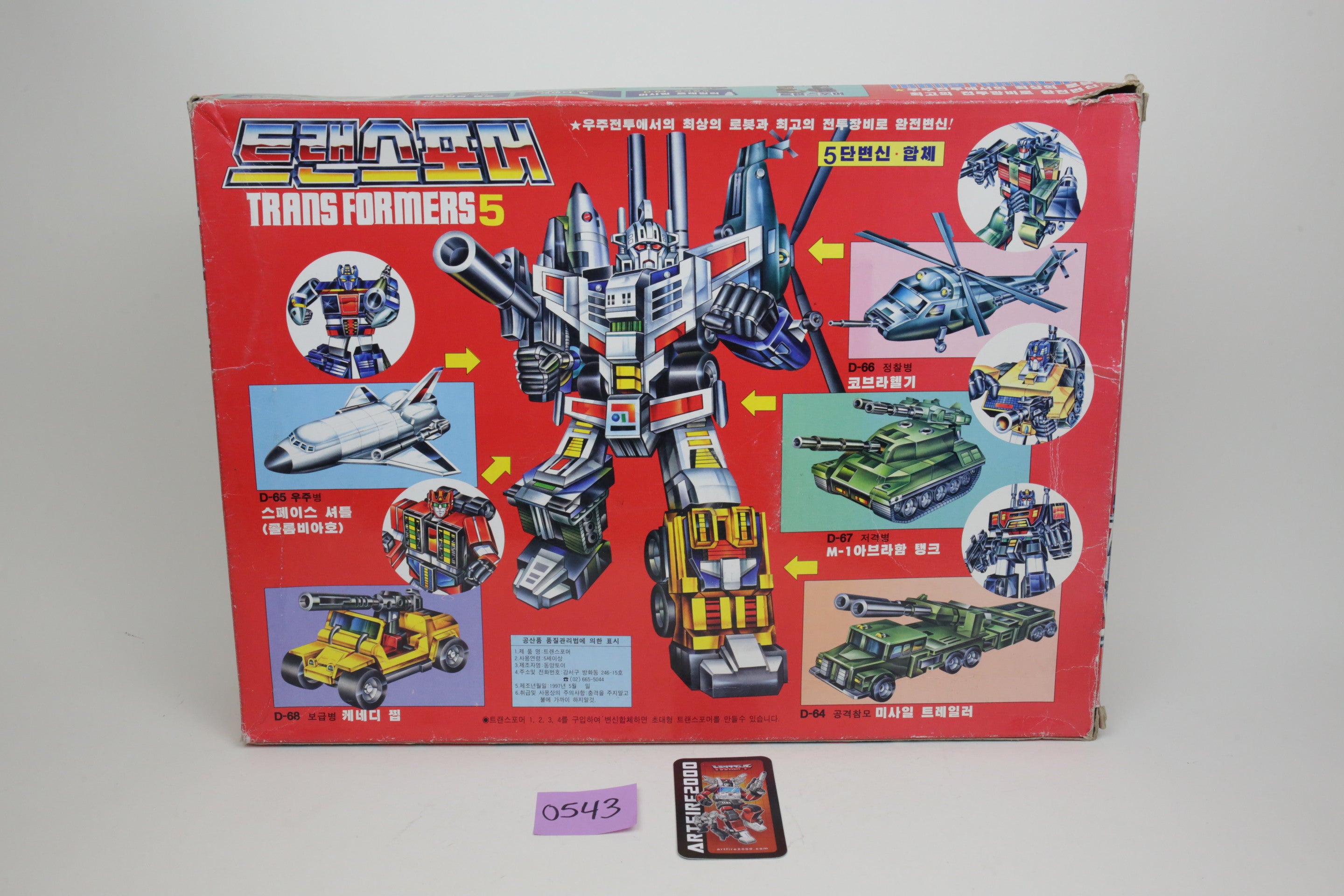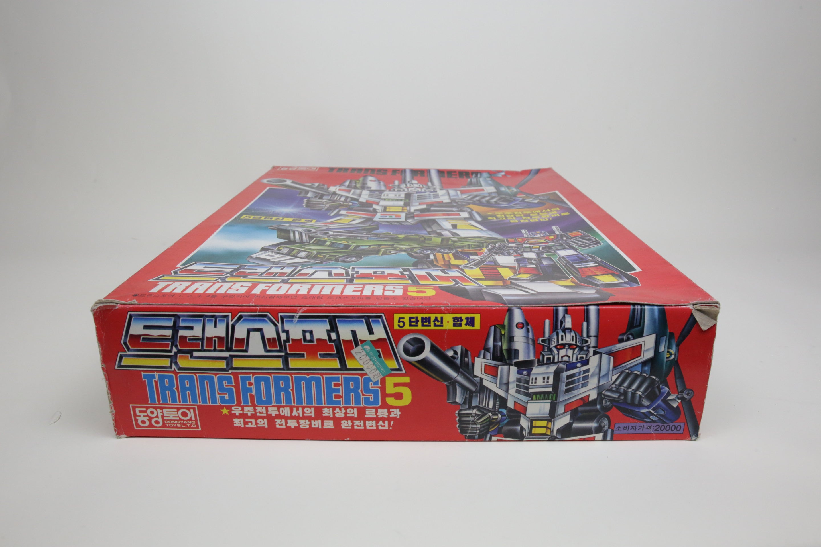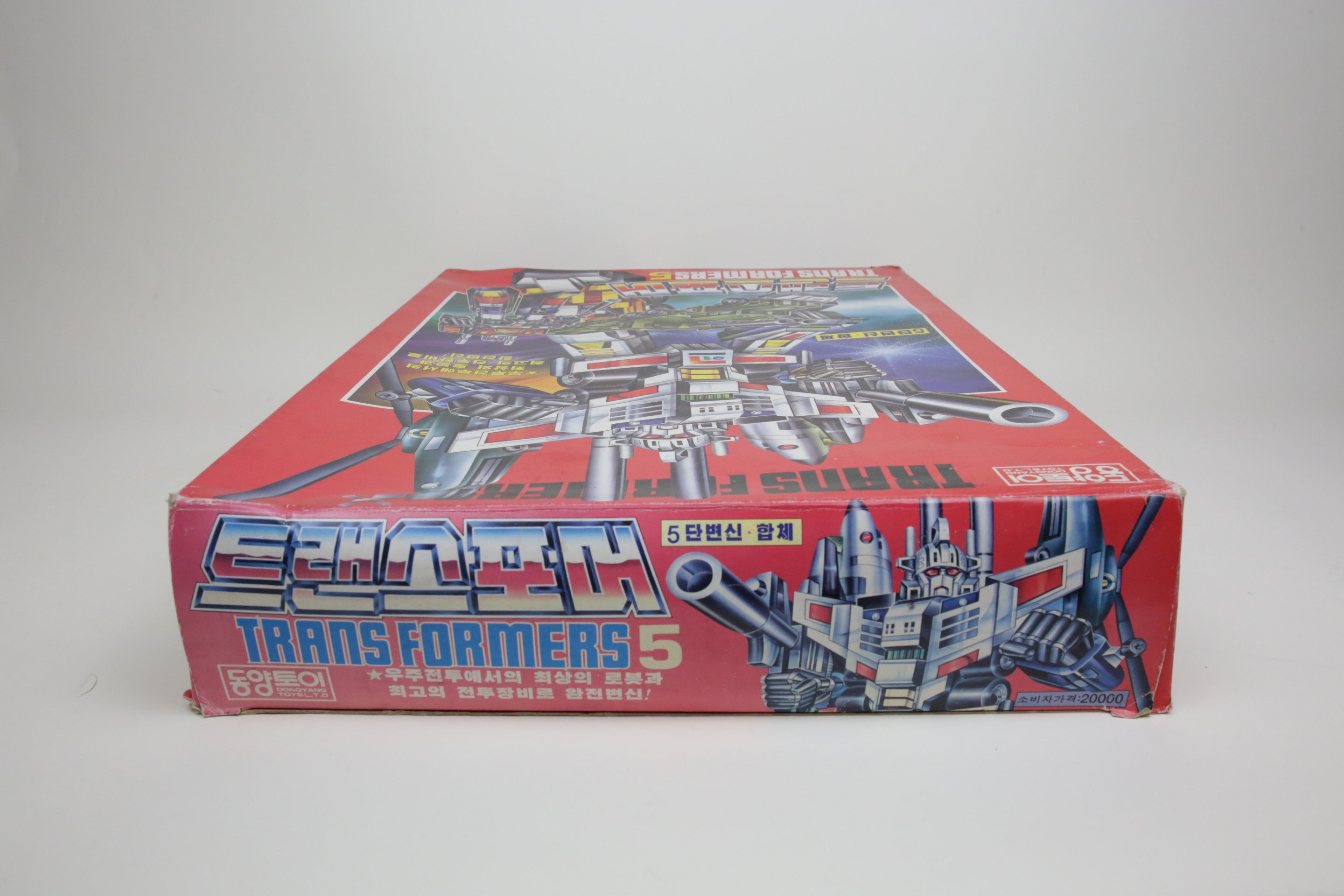 In the spirit of high-quality Korean KOs, this is Bruticus. It’s huge and very difficult to find. Toys are in good shape and are completely unused. The smaller G1 Onslaught is just for comparison, and not included. Some of the plastic inserts have some cracking from age.