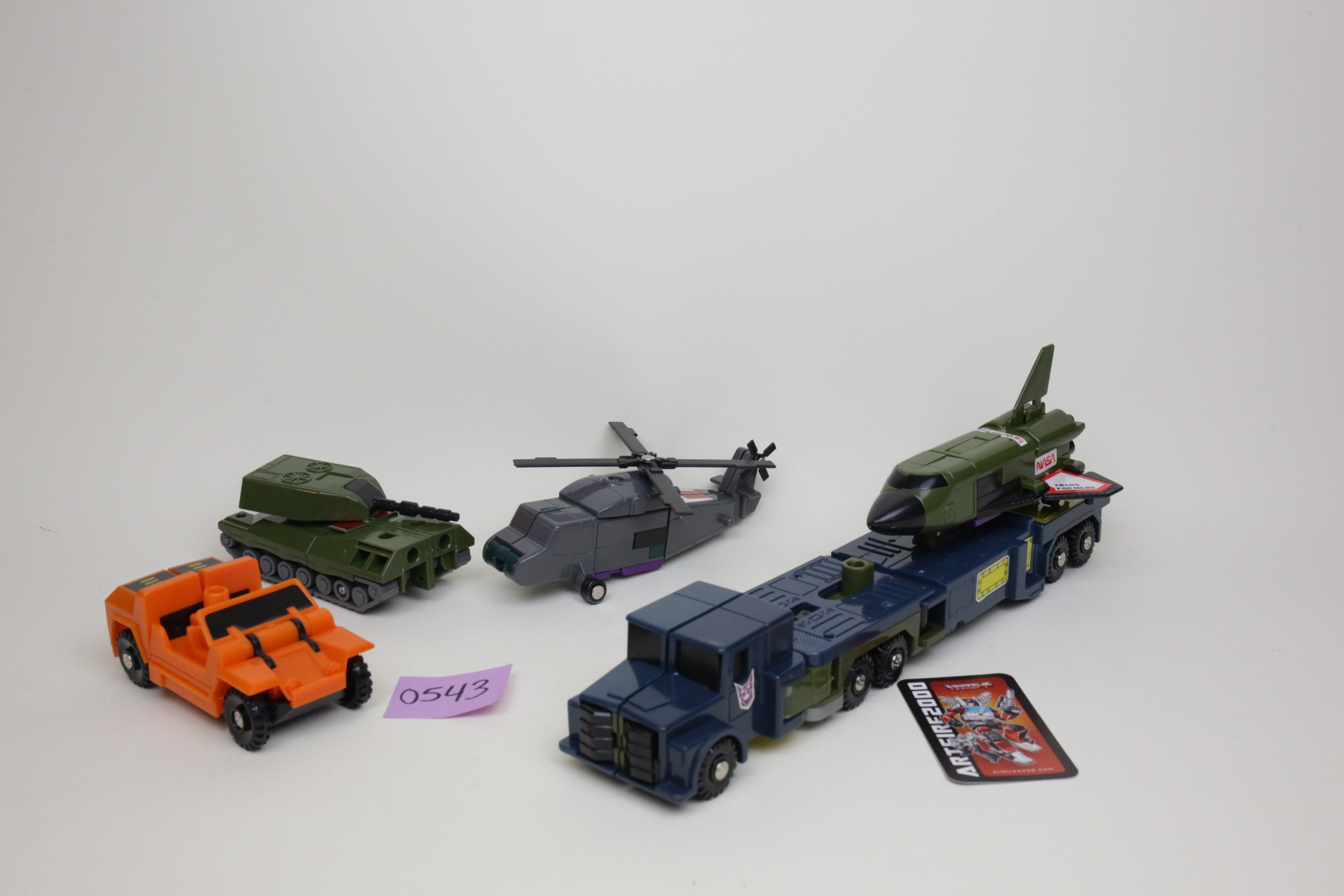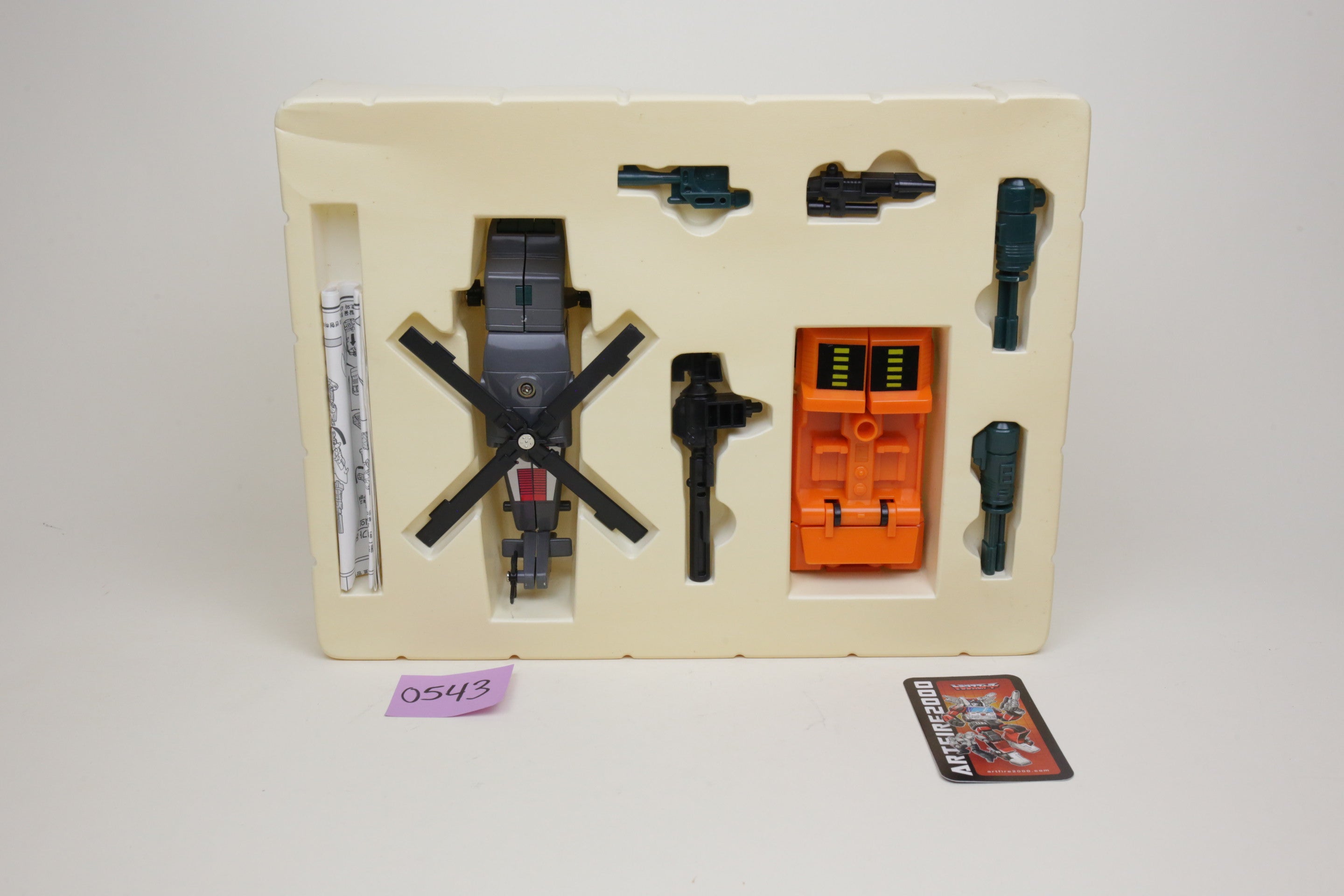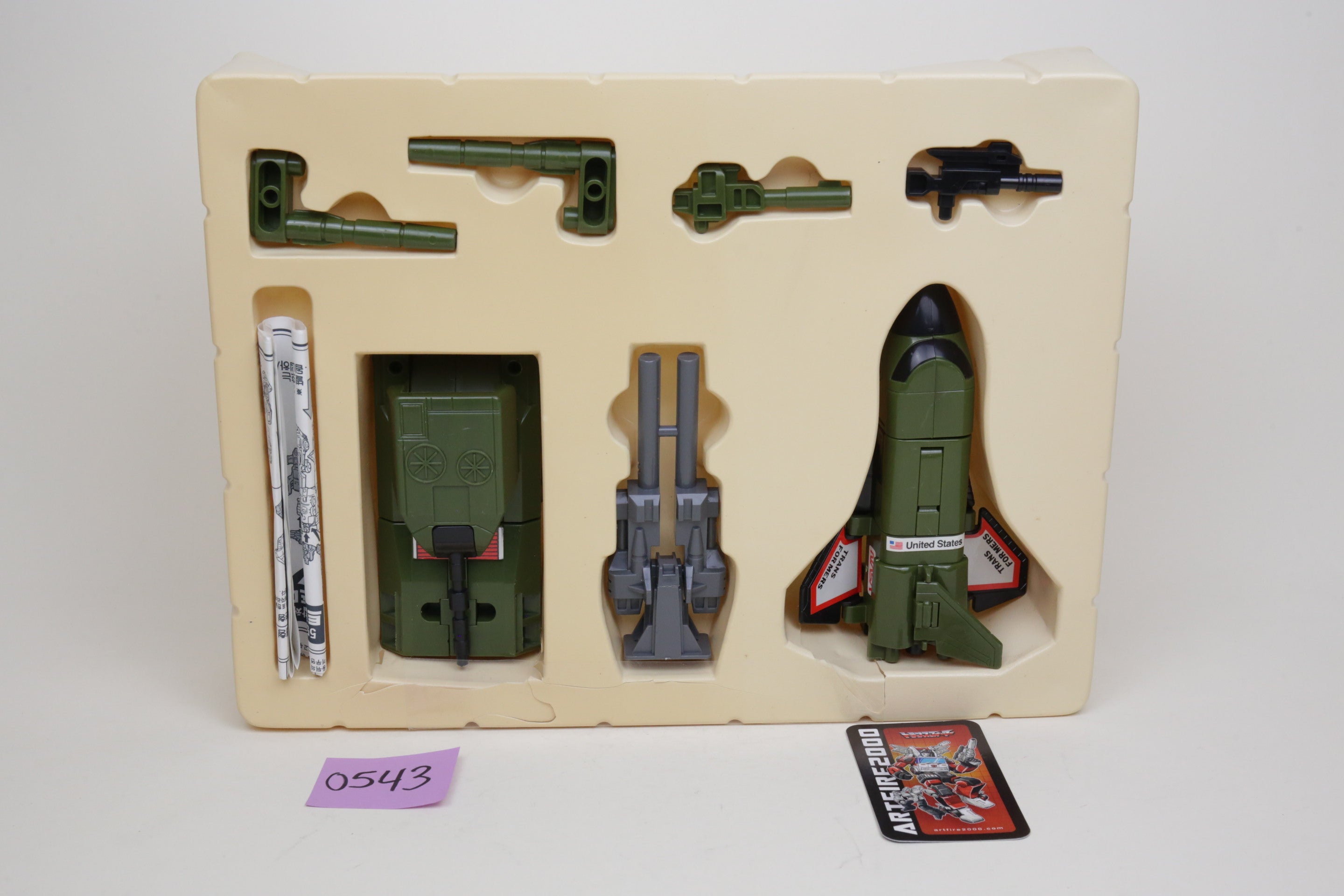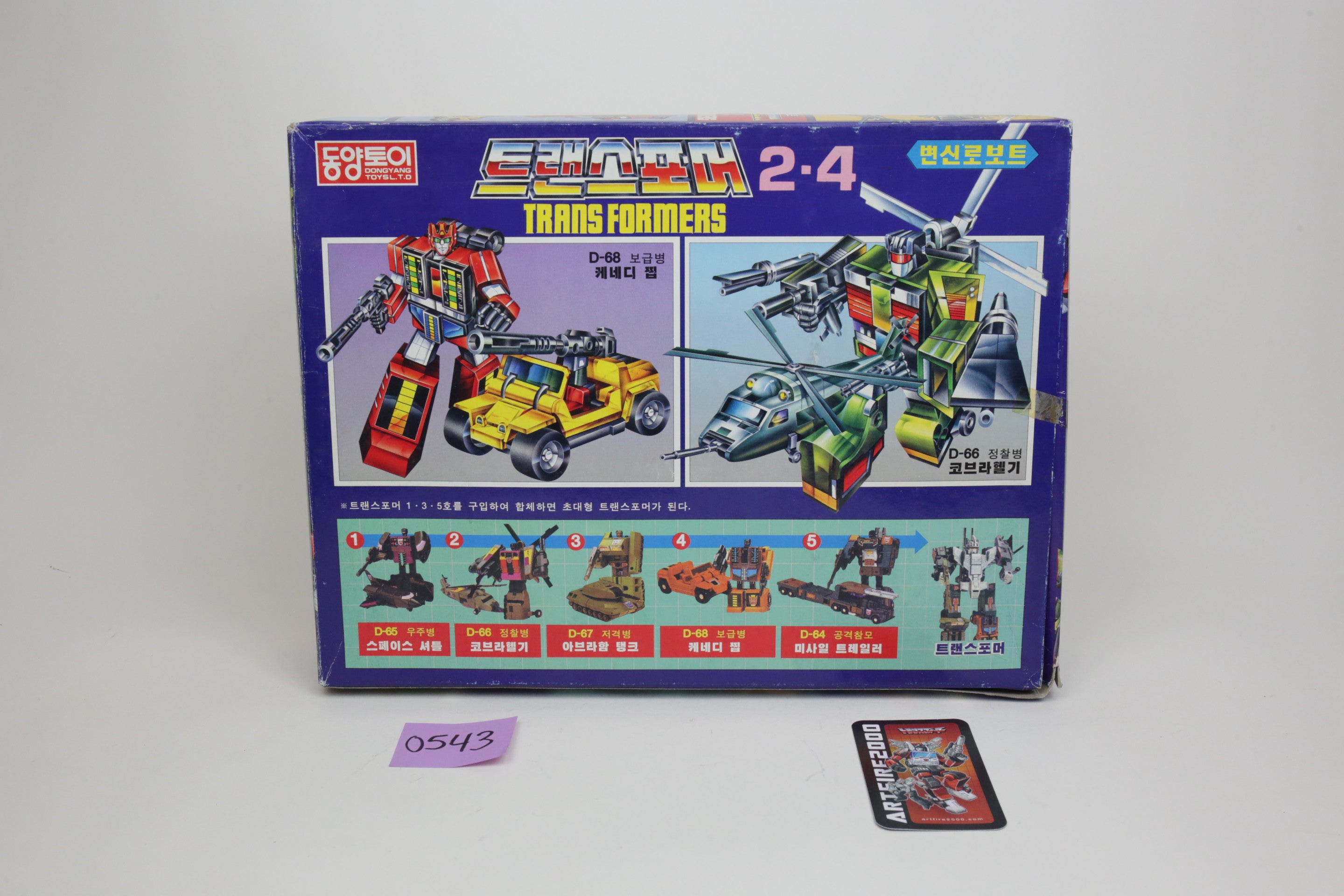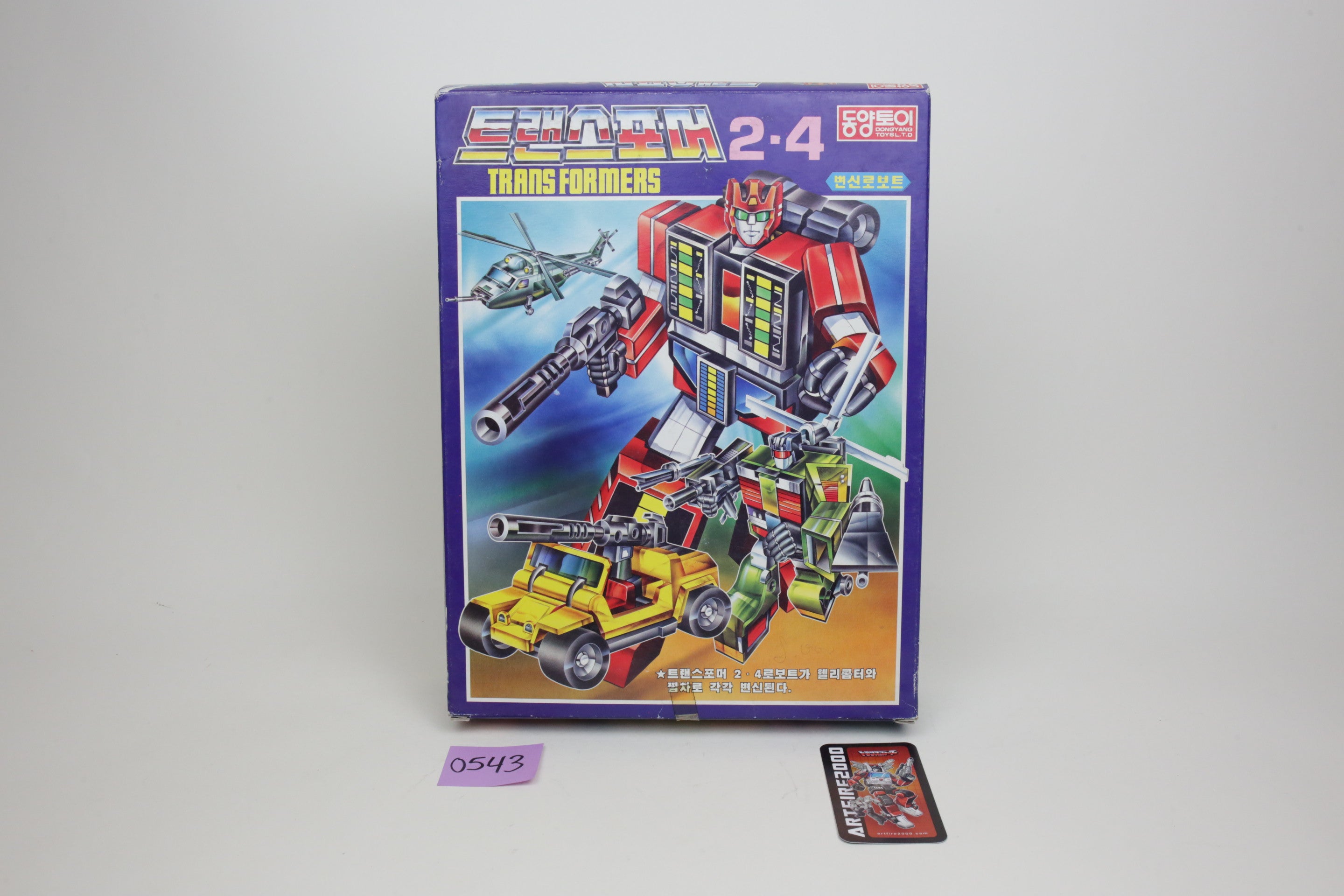 In the spirit of high-quality Korean KOs, this is Bruticus. It’s huge and very difficult to find. Toys are in good shape and are completely unused. The smaller G1 Onslaught is just for comparison, and not included. Some of the plastic inserts have some cracking from age.