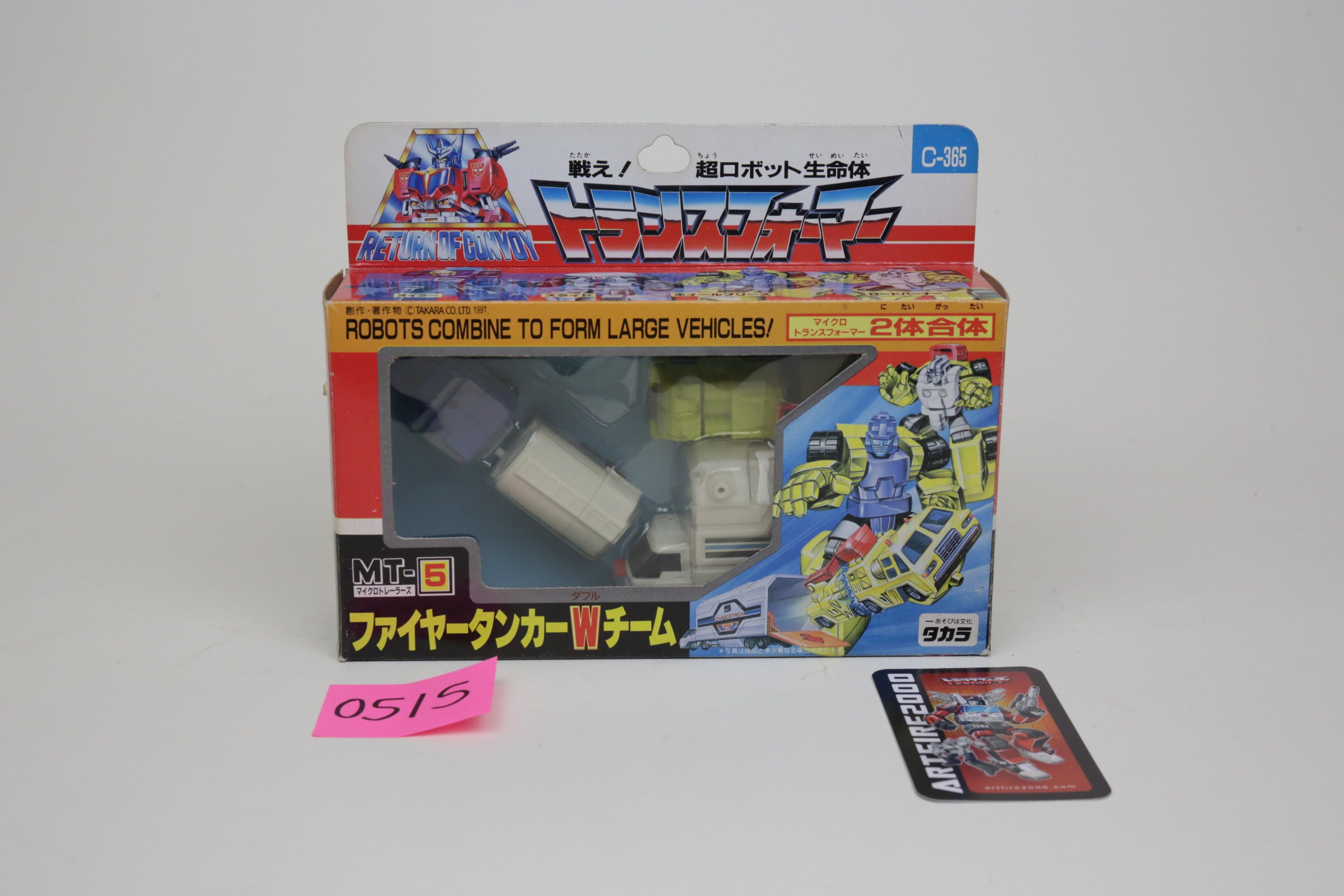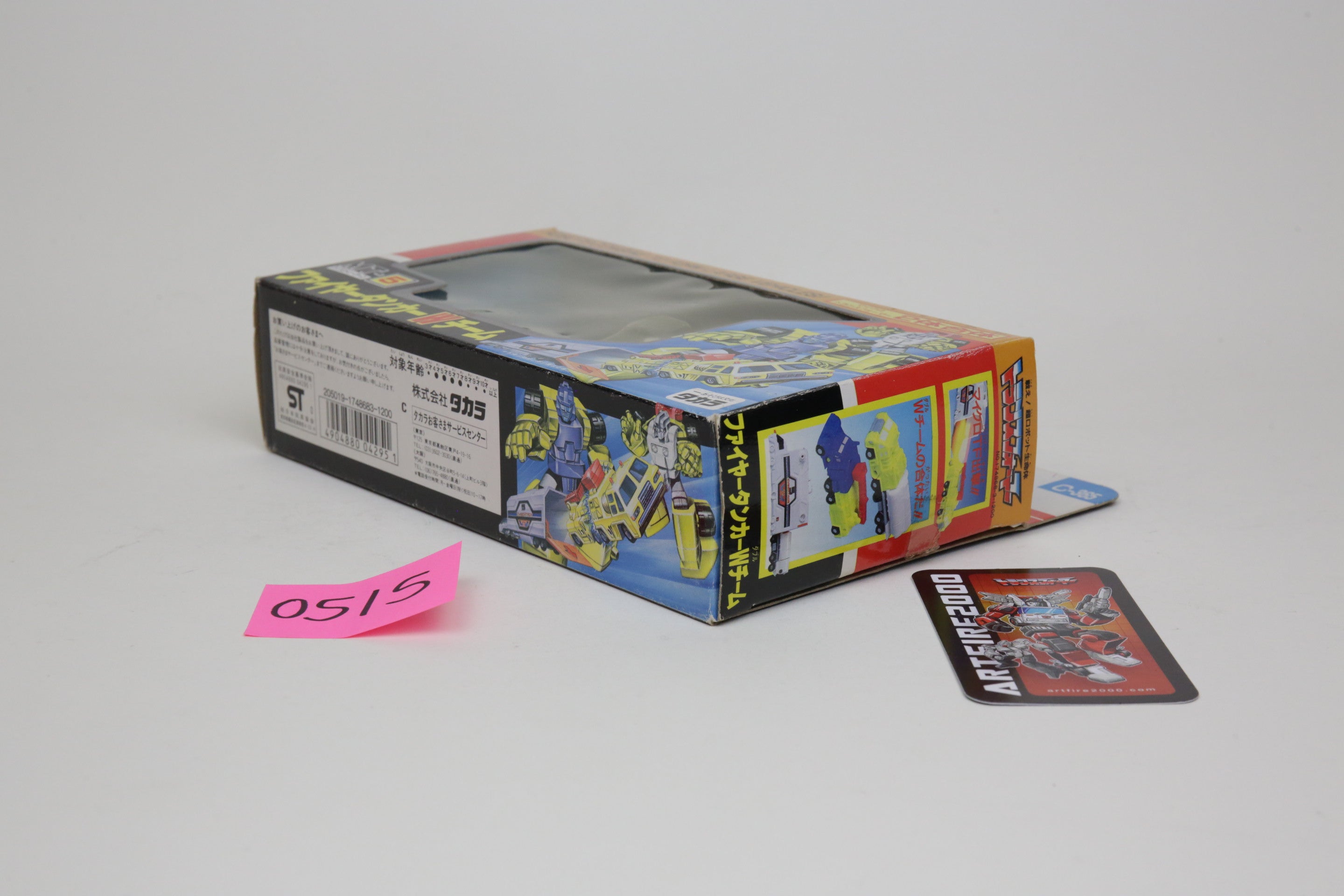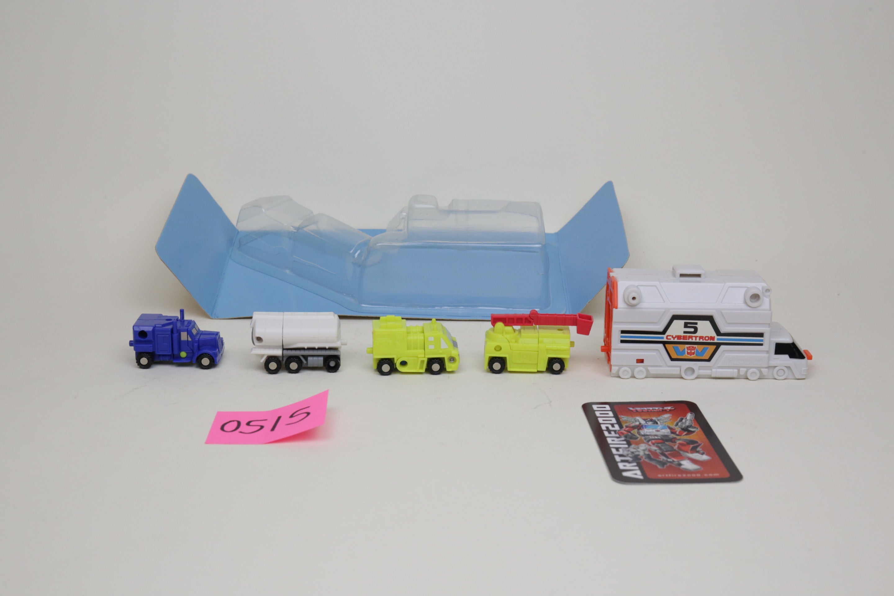 This is a Japanese Micromaster team, comes as shown with box. The bubble has been cut loose on the top, but the toys are in great shape, and also comes with some papers & some unused stickers!