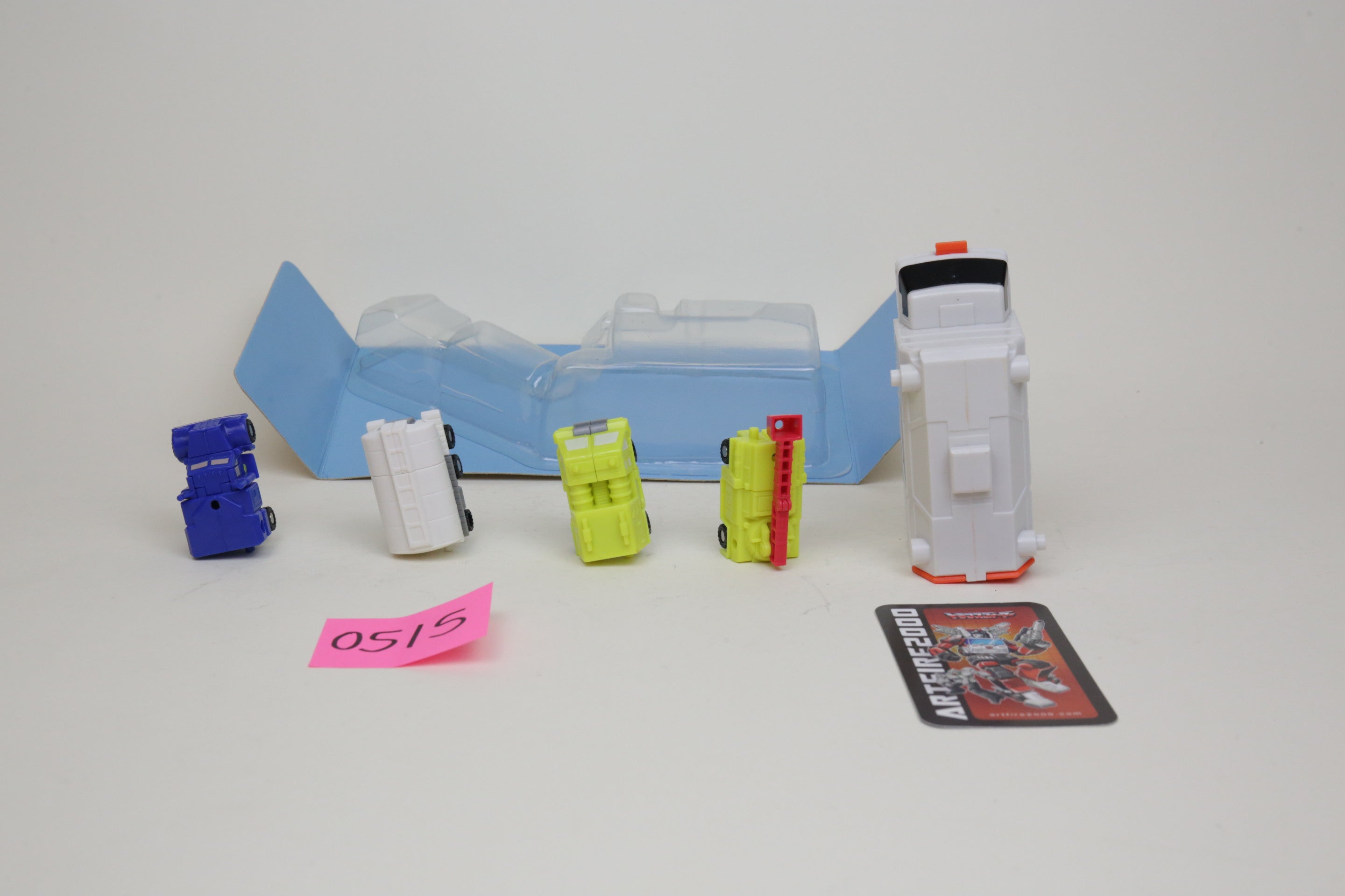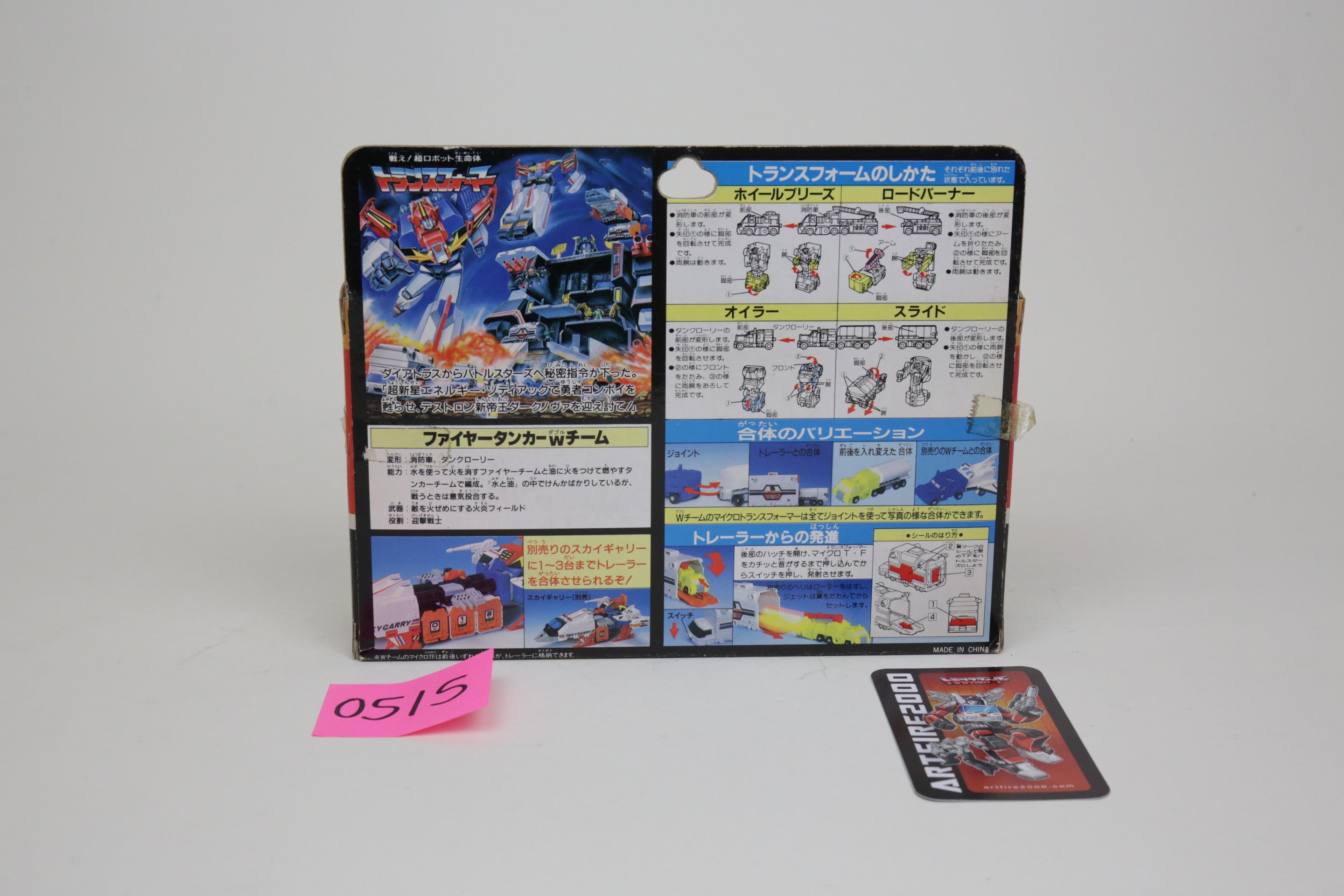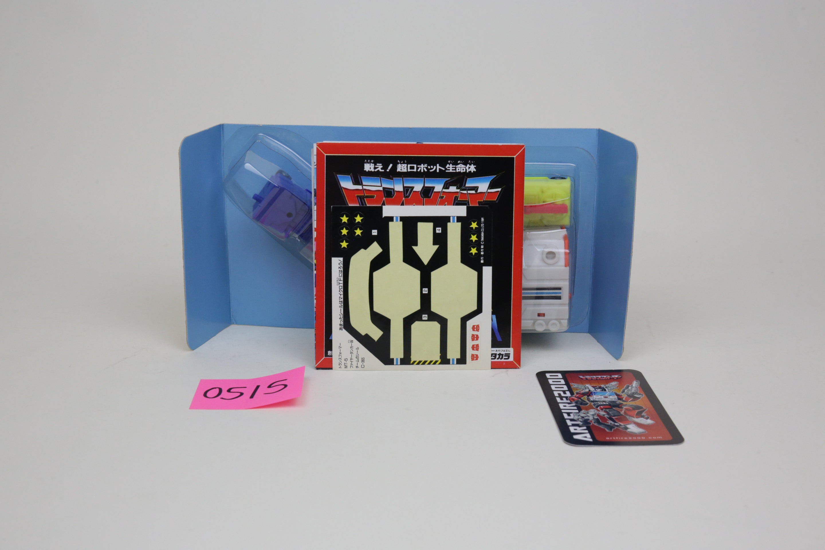 This is a Japanese Micromaster team, comes as shown with box. The bubble has been cut loose on the top, but the toys are in great shape, and also comes with some papers & some unused stickers!