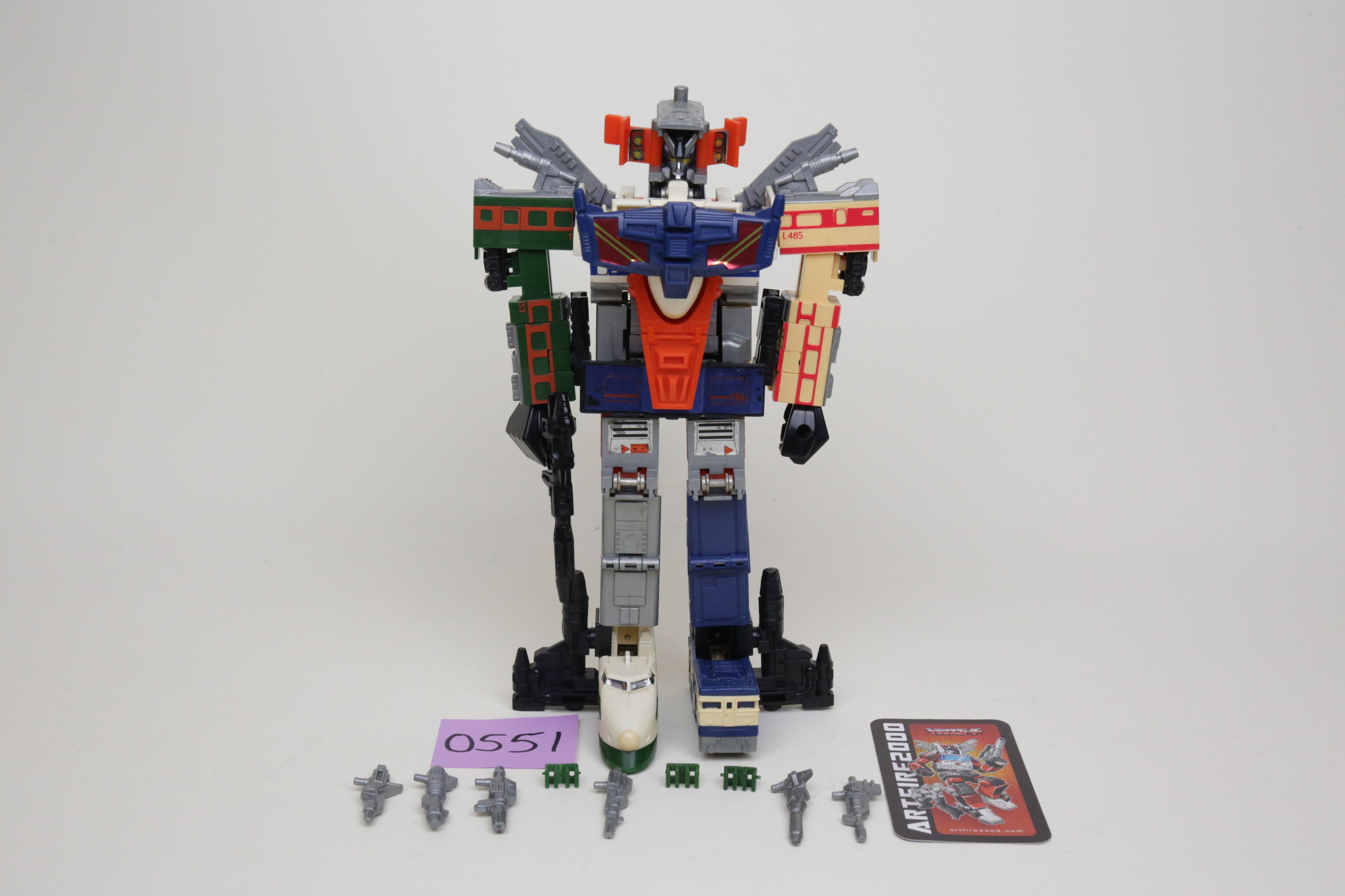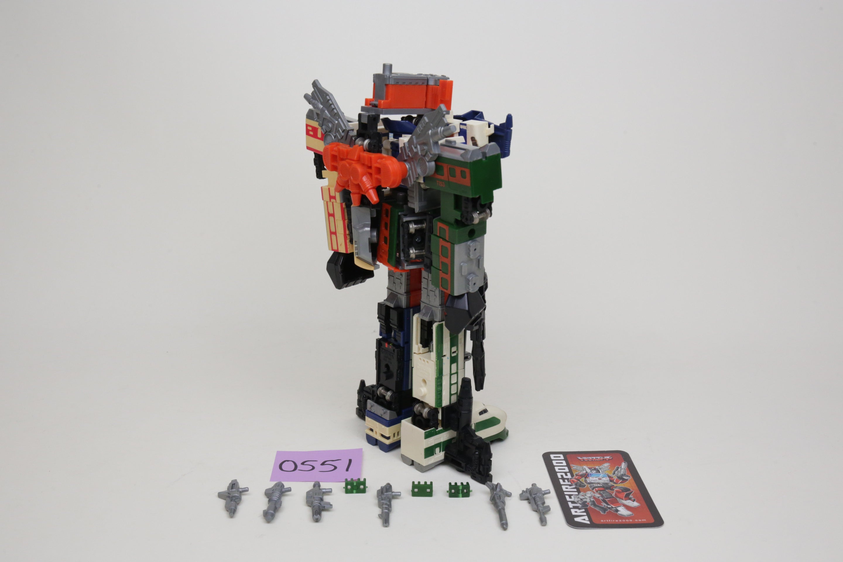 This is the Transformers version of Raiden in good condition with all combiner parts, small guns, and 3 connectors. This one is of the rarer Zone release where Takara removed all of the rub signs and filled in the blocks where the rubsigns should be. The orange parts on this set are a slightly different tint than the 1987 version. Incredibly difficult to find as a complete set, a must-have for variant collectors.