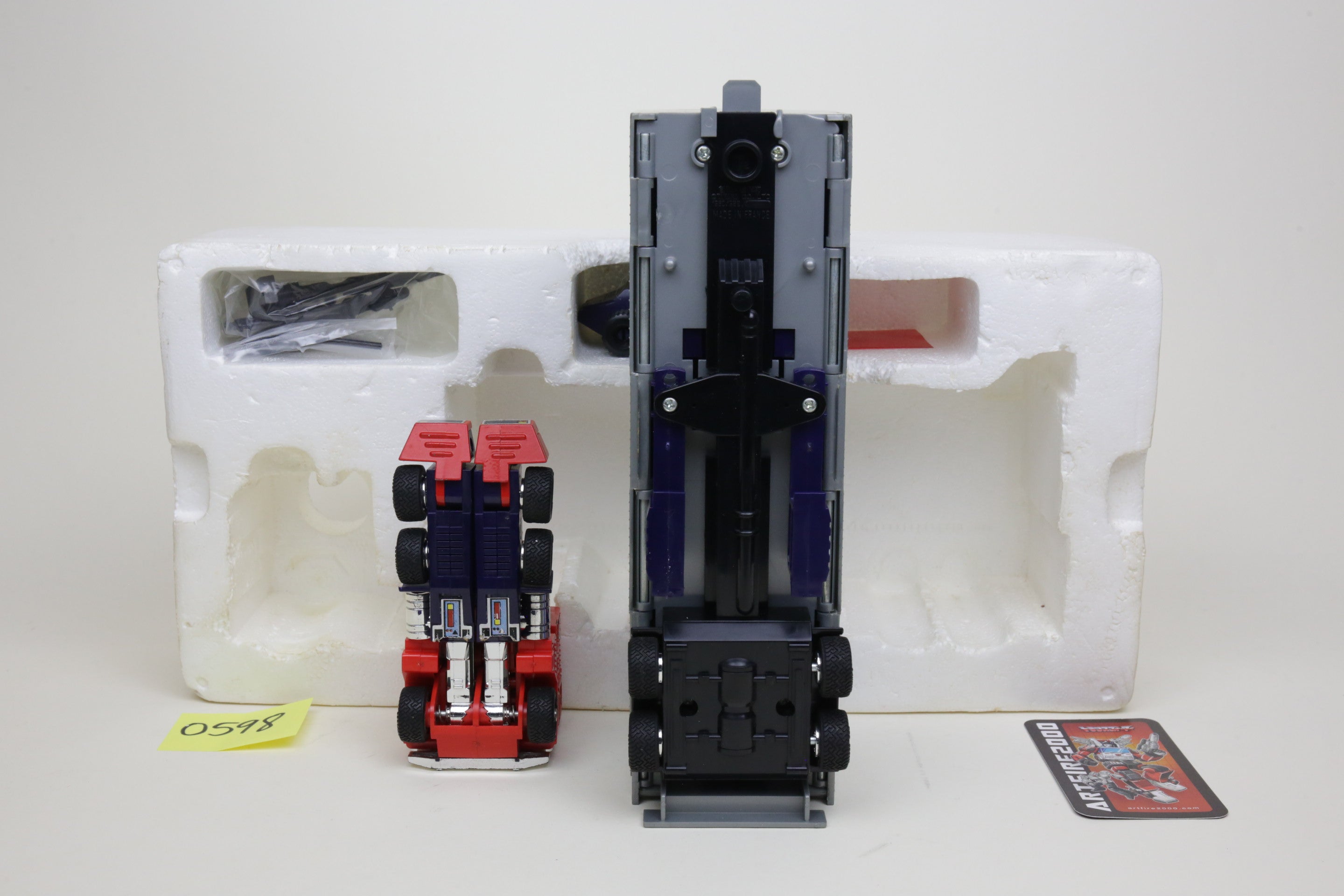 This the elusive European exclusive red footed Optimus, complete with all parts in a box that displays well.