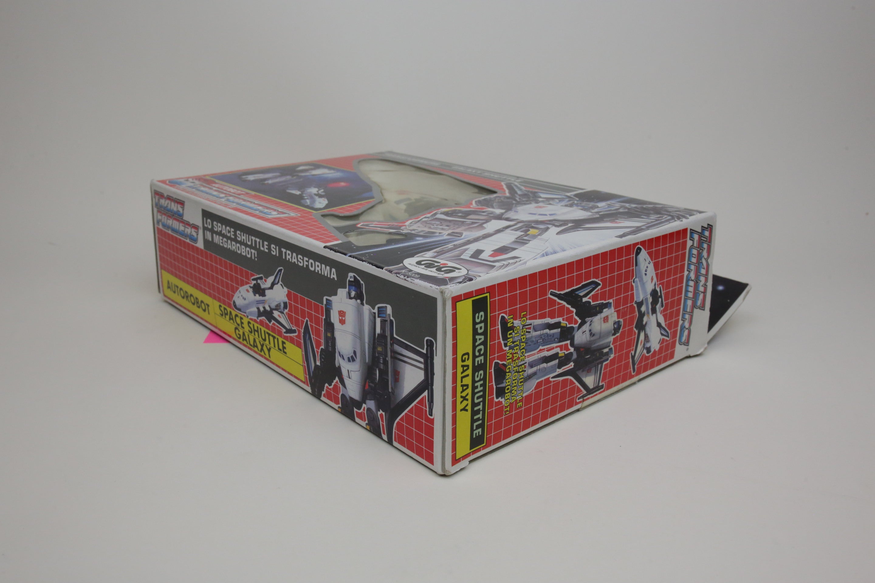 Galaxy shuttle was released to be part of Victory and Zone, and can be used on Countdown. This one is the rarer Victory first release version. It comes complete in good shape with instructions. Box displays well.