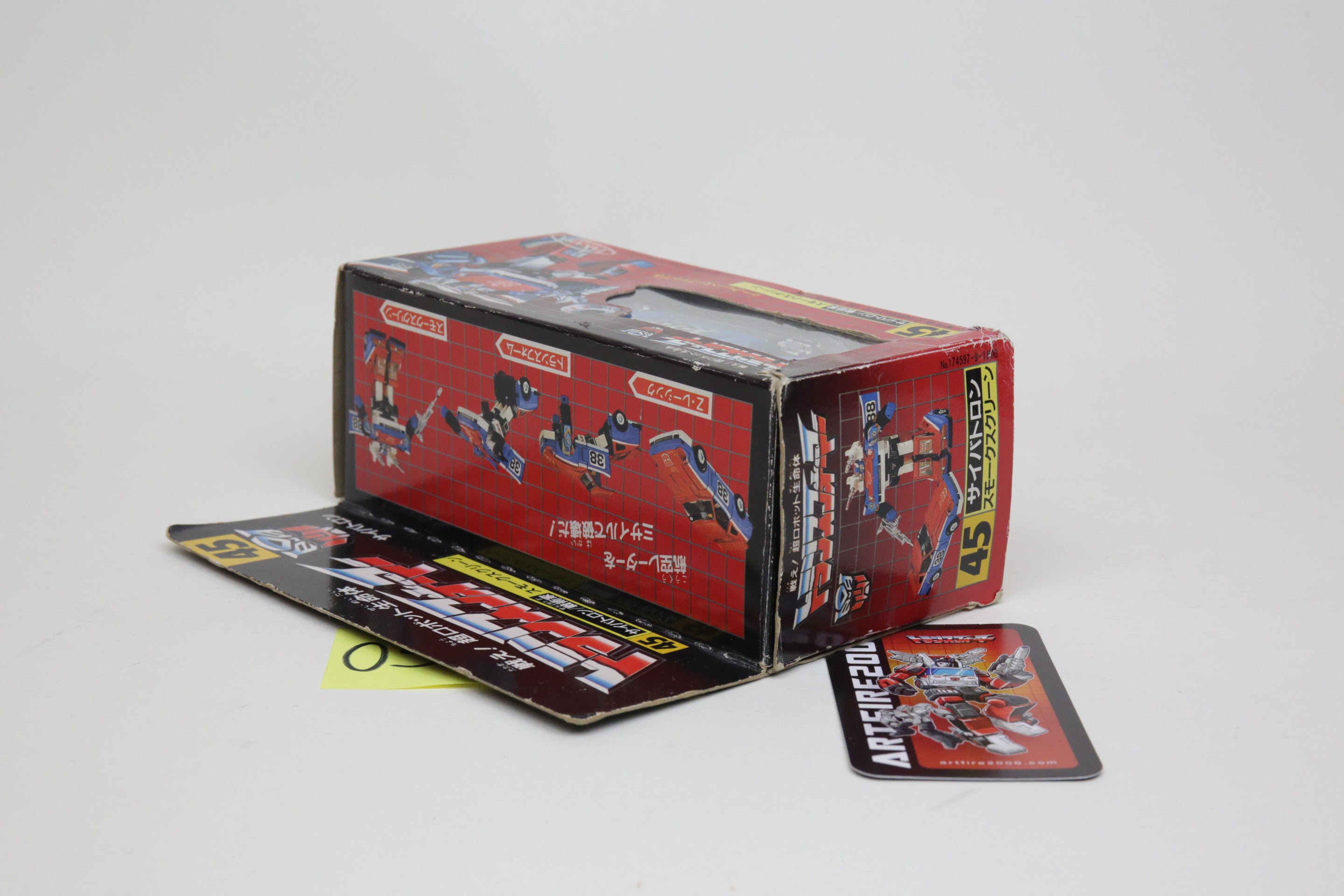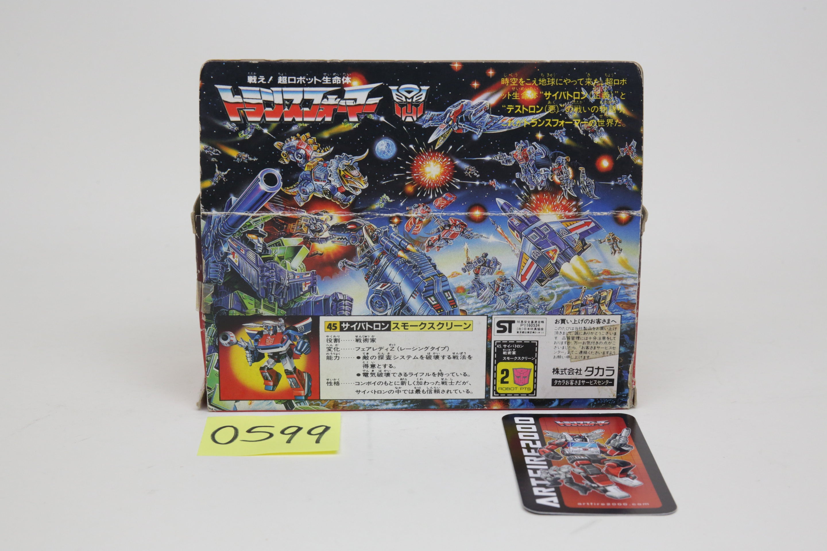 Smokescreen is complete in box. Two of the missiles are still on the sprue! Box displays well.