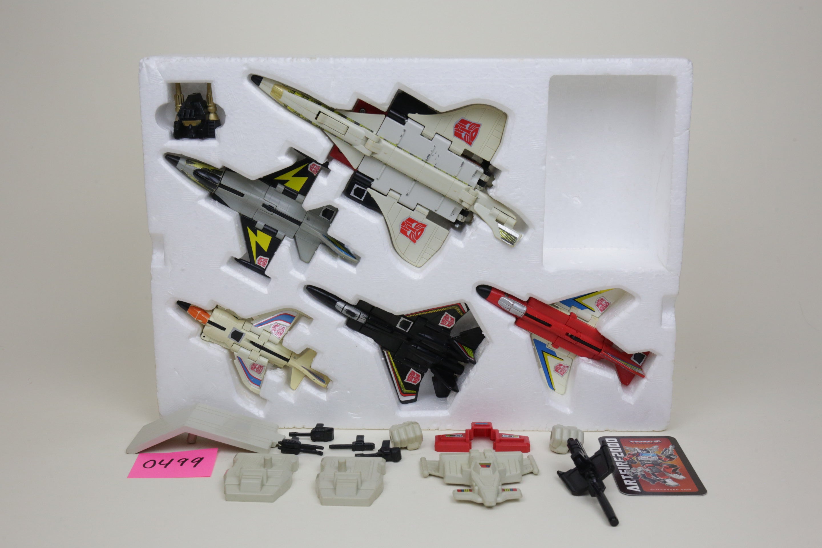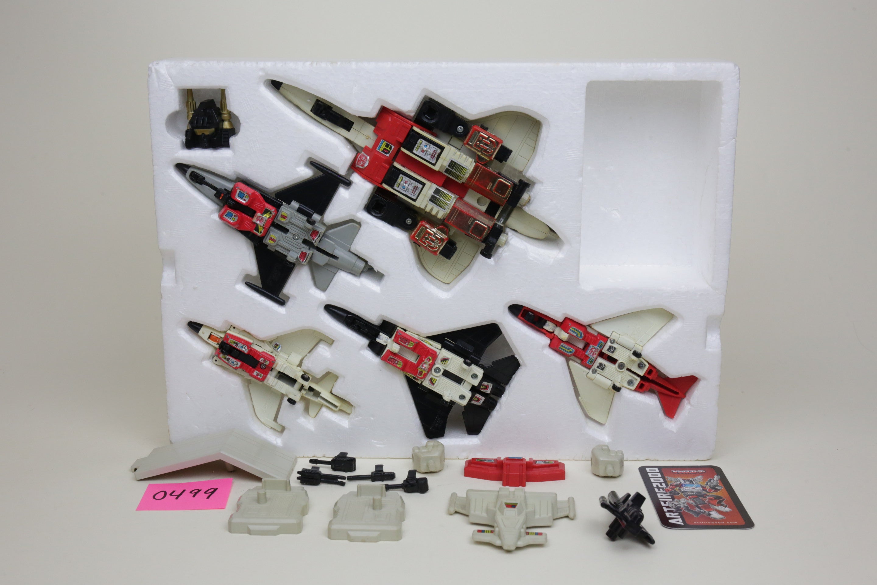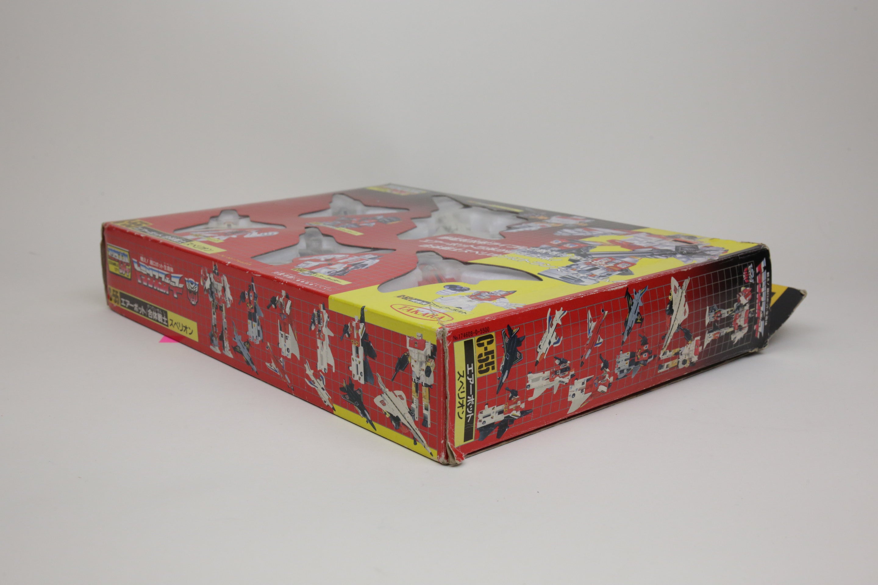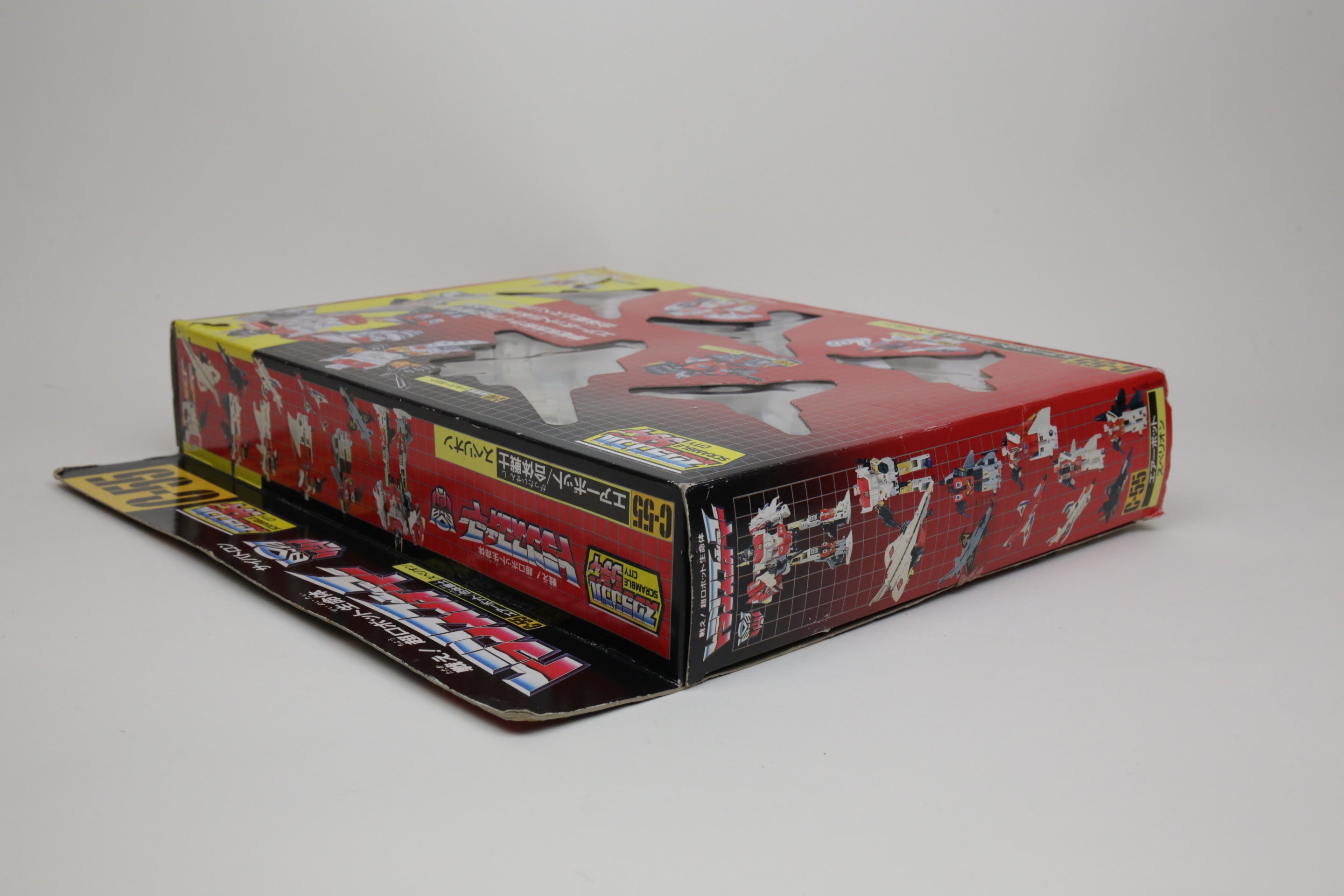 Superion is in good shape and complete with all parts. The Japanese exclusive Scramble City version of Silverbolt has a launcher mechanism! This one comes in good condition, a bit of off-white on some parts, and instructions.